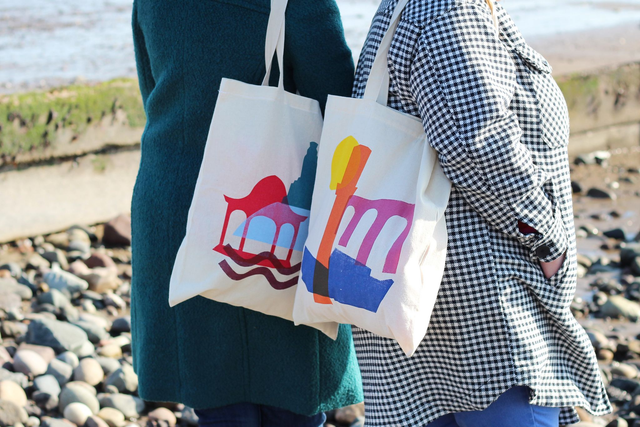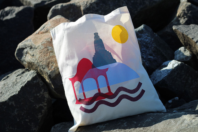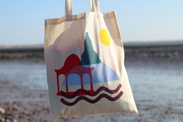 A fun and colourful screen printed tote bag of Dundee's cityscape, featuring Magdalen Green Bandstand, Law Hill and the River Tay. It's a minimalist take using the shapes of some of Dundee's most recognisable landmarks, paired with bold colours to create a playful and eye-catching design. This totes amazing bag is perfect for everyday use either as your main bag or to keep as a wee extra when you go shopping.