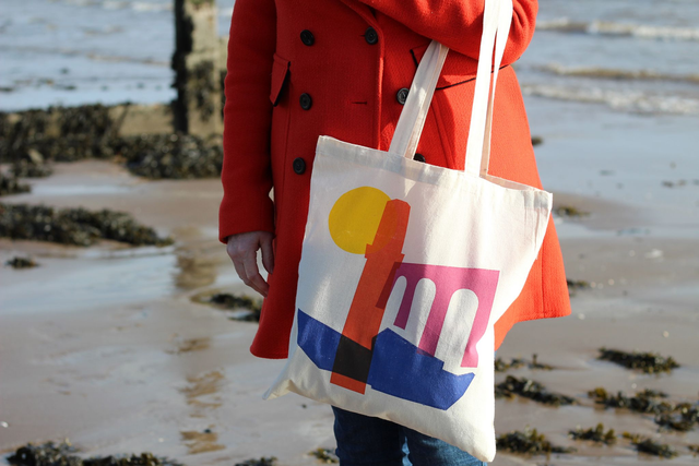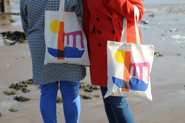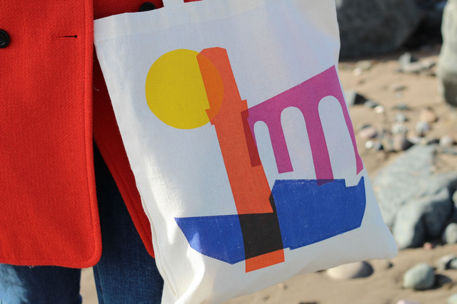 A fun and colourful screen printed tote bag of iconic Dundee architecture, featuring the V&A, Tay Rail Bridge and Cox's Stack. It's a minimalist take using the shapes of some of Dundee's most recognisable landmarks, paired with bold colours to create a playful and eye-catching design. This totes amazing bag is perfect for everyday use either as your main bag or to keep as a wee extra when you go shopping.