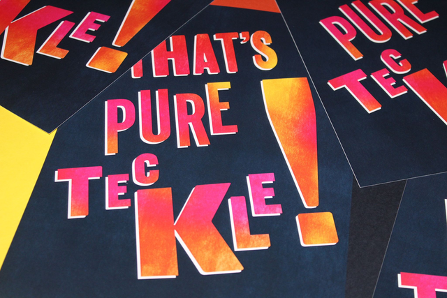 A bold and beautiful print that celebrates the Dundonian slang for something that is great. This is an A4 print that has been designed in a letterpress style with highlights of bright pink, yellow and orange. Printed by the lovely folk at Awesome Merchandise on quality 300gsm smooth white paper.